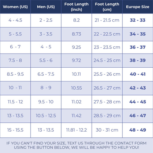 | Foot Length | Women (US) | Men (US) | Europe Size |