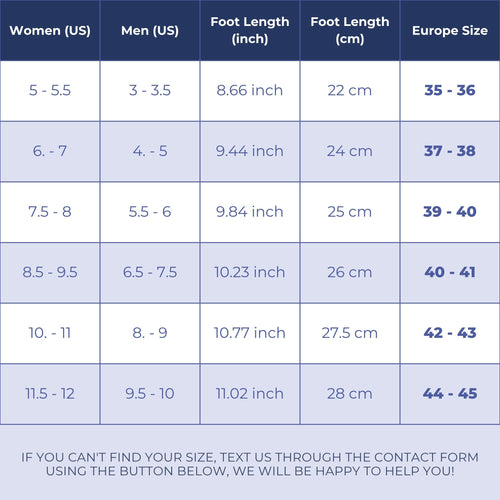 | Foot Length | Women (US) | Men (US) | Europe Size |